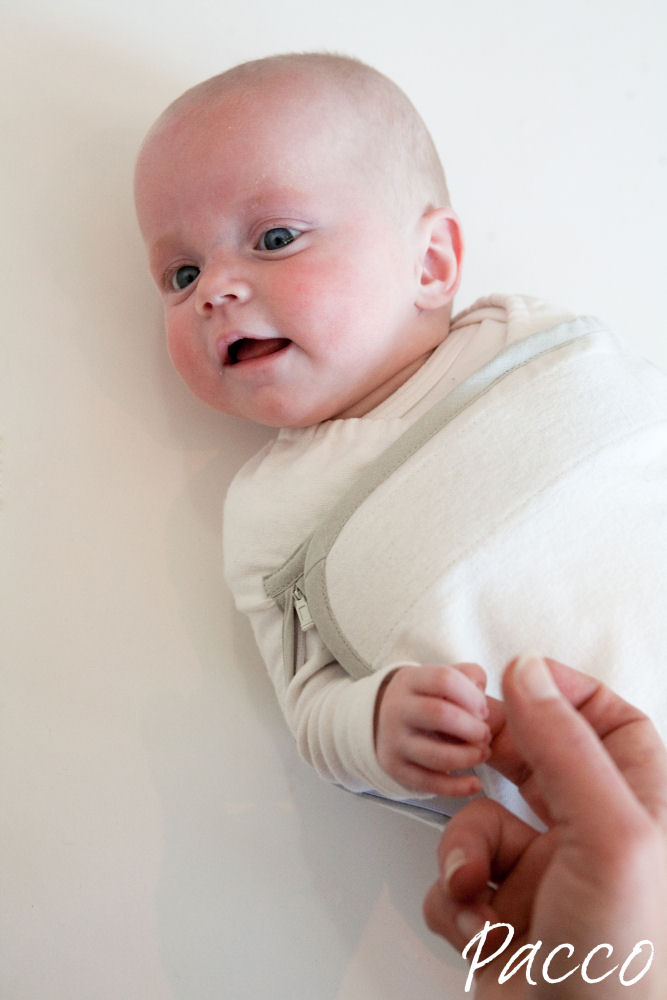 - De Pacco heeft een uniek, gepatenteerd ontwerp. De doek kan helemaal open, je legt jouw baby op de doek en alle klittenband sluit aan de voorkant.